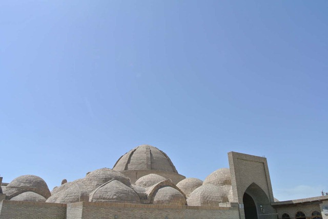 另一個有看頭的就是卡揚大喚拜塔,高近50米的喚拜塔遠遠還沒進城市就能看到,也成了布哈拉最著名的地標;跟當地人聊天才知道,這麼高的建築居然是用磚塊及加入駱駝奶的石膏堆起來的,就這樣聳立了數百年經歷無數地震,依然聳立在布哈拉市中心,相當令人欽佩的建築工藝;